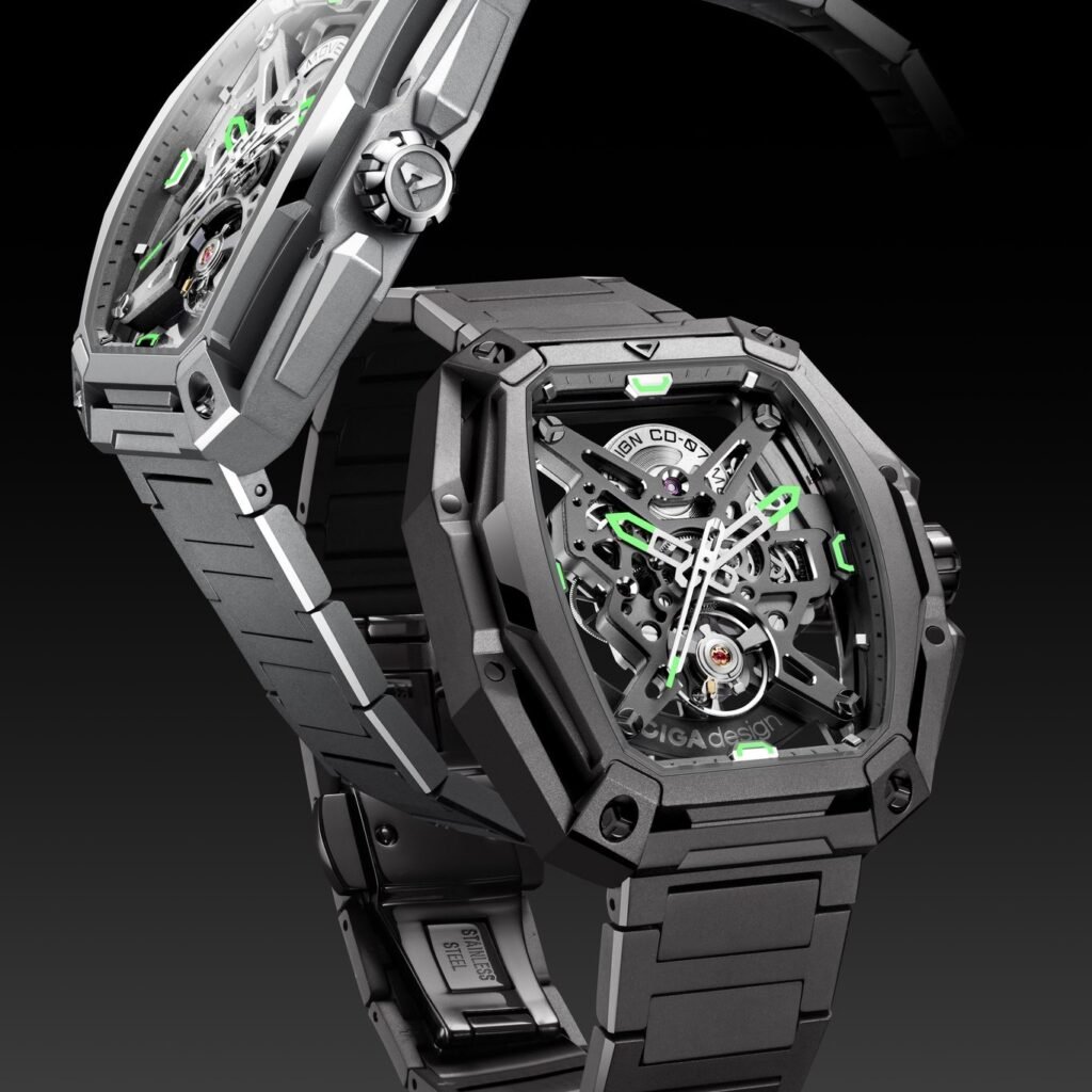 CIGA Design 璽佳全新推出第三代「Hunter」系列,以標誌性的酒桶型表殼,結合 X 型立體雙面鏤空設計,勾勒出充滿力量感的粗獷金屬輪廓,呈現對稱均衡的機械幾何美學。腕錶搭載品牌自研高頻自動上鏈機械機芯,機芯結構以三角框架建構出鮮明的 X 型態,指針與表盤亦配備夜光顯示,提升夜間讀時的實用性與視覺層次。316L 精鋼表殼採用三層結構設計,厚度僅 12.1 毫米,佩戴更貼手輕盈;配合原創 H 型鏈式鋼帶,順應手腕弧度,兼顧剛毅線條與舒適佩戴體驗。