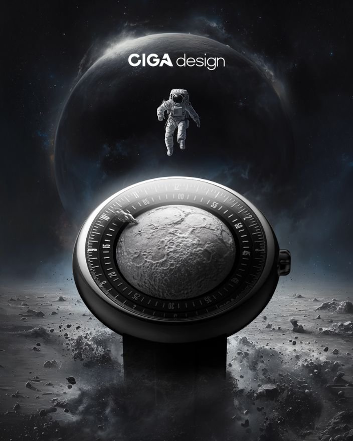 CIGA Design 璽佳以「探月者」腕表,致敬人類首次登月的偉大征程。腕表採用輕盈合金鍛造月球表盤,並利用微雕工藝,真實還原 NASA 超高清影像中月球表面的隕石坑及山脊。